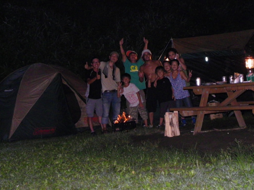 管理棟はもう閉まっているので、勝手に空いているテントサイトに入った。すると、お隣のテントサイトのお姉さんが「こんばんは~」と挨拶してくれ、いつもの流れの後、お隣のボスのお兄さん(刺青してて茶髪)が「晩ご飯一緒に食べようよ」と言ってくれた。わあーい。
