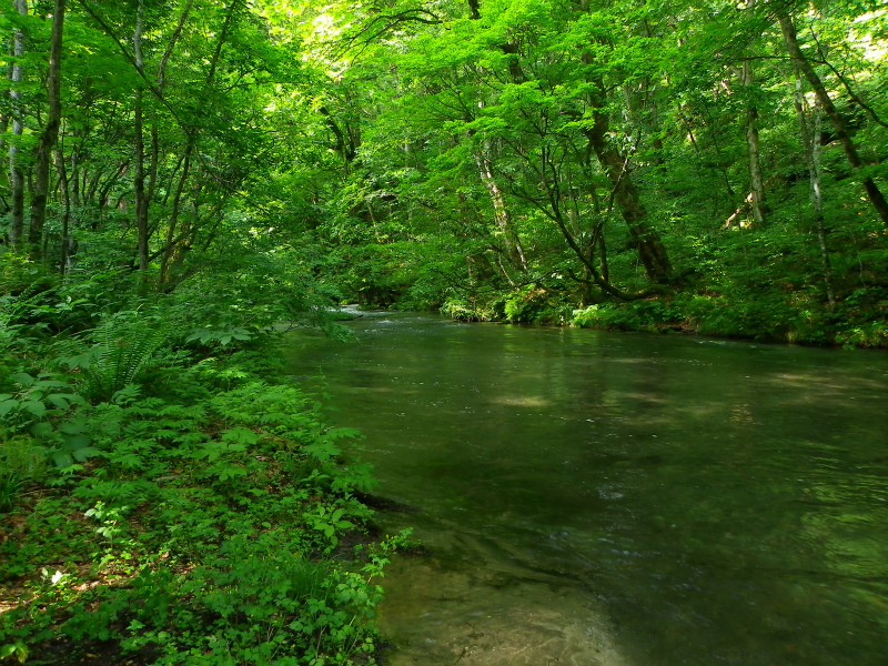 見所が多過ぎて、いちいち写真を撮っていたらきりがねえ。テレビでしょっちゅう取り上げられるのも理解できるわ。ここまでチャリンコで旅してきて、景色に感動することは殆ど無かったが、奥入瀬は素晴らしい。