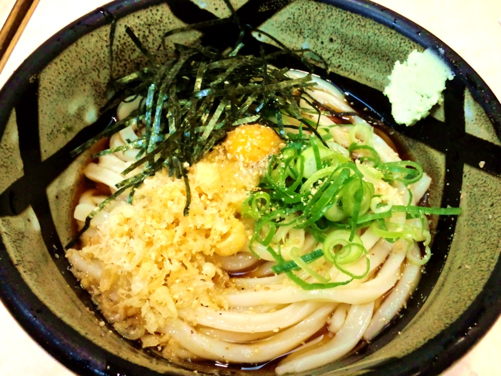 そんで、朝ごはんは11時くらいに食べた。倉敷名物ぶっかけうどん(ぶっかけうどんは倉敷が発祥らしい)。麺にコシがあってうま~い。
