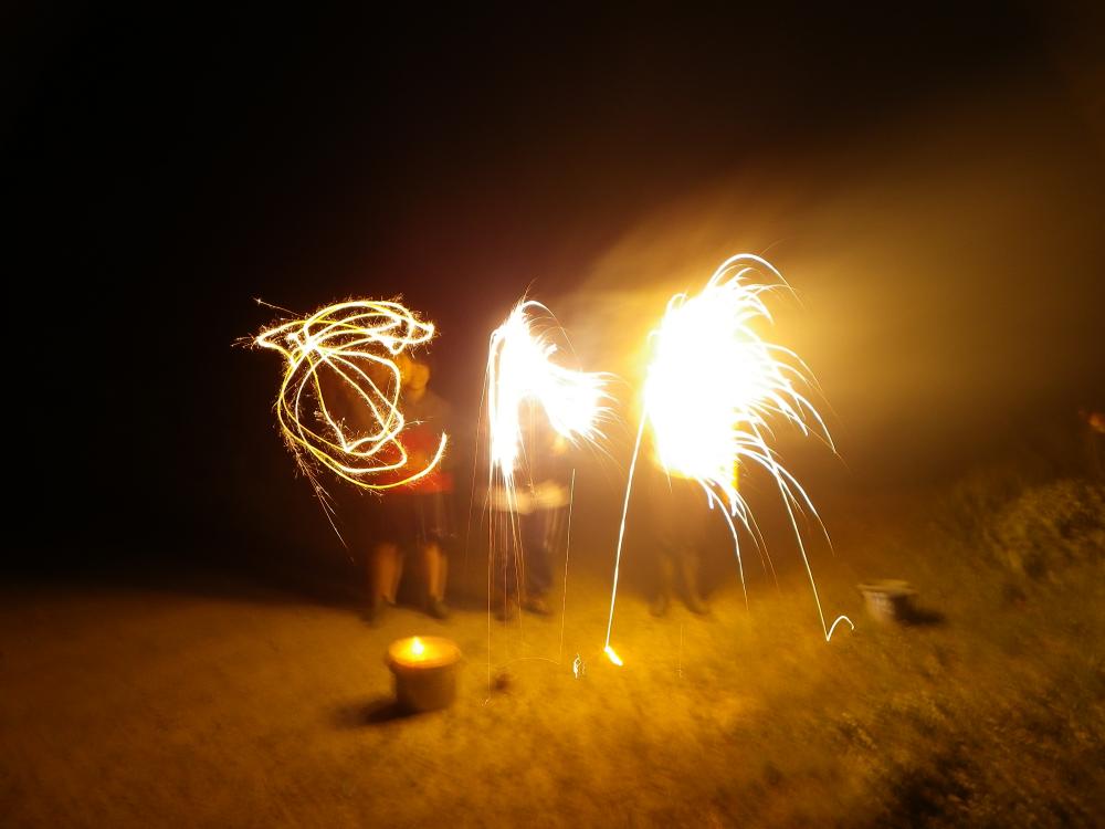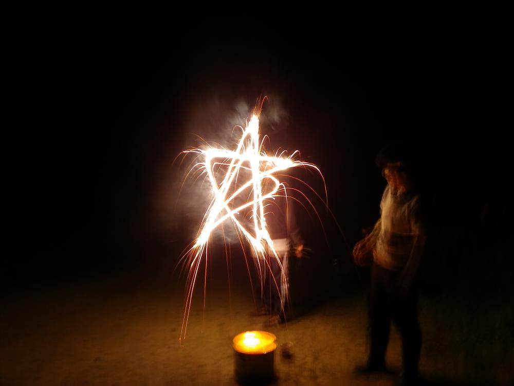 バーベキューの後はわいわい花火をしてから、ケーキを皆で食べた。おしゃべりも弾みますね。