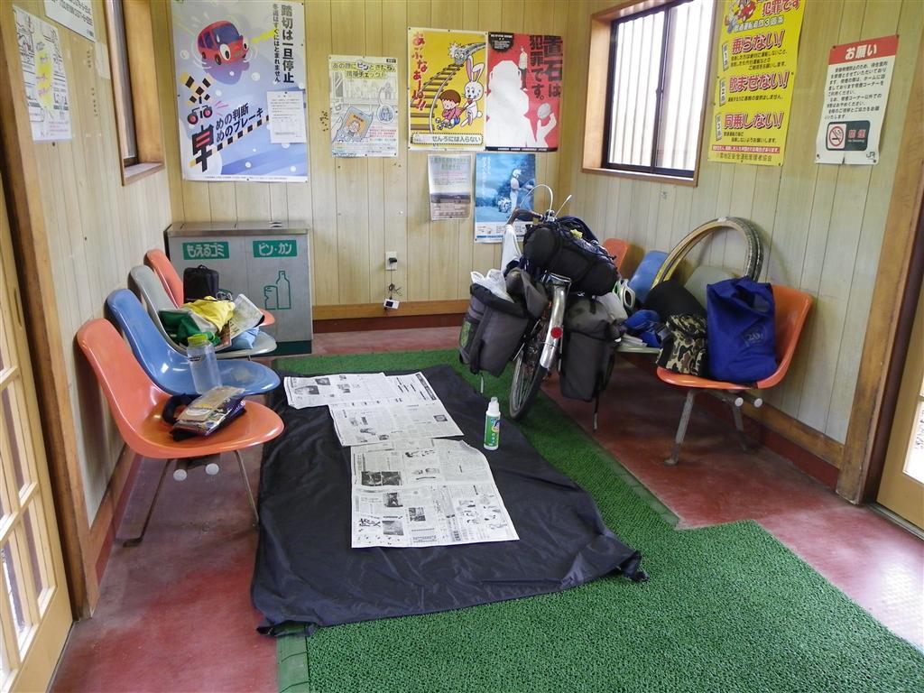 当初は長万部で泊まろうと思っていたものの、結局35km先の八雲町まで行き、なかなか良い温泉に入った後、無人駅で寝た。