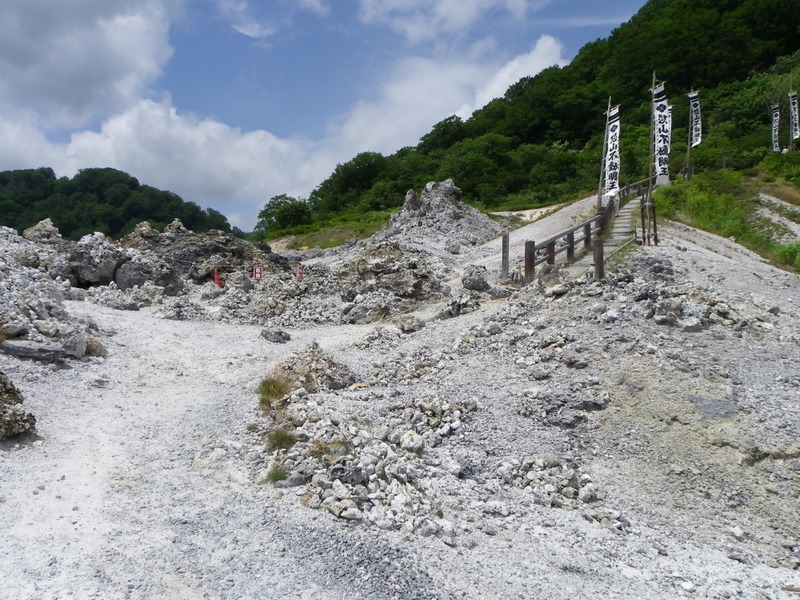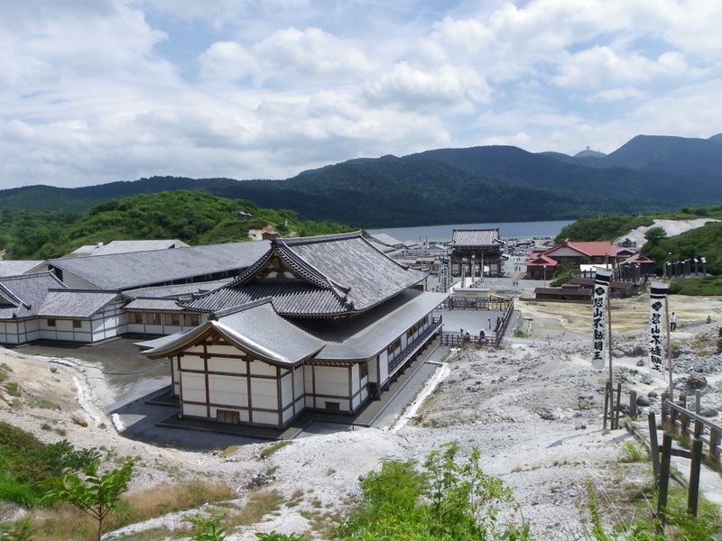 辿り着きましたる恐山。小さな盆地という感じで、噂どおり暑い。