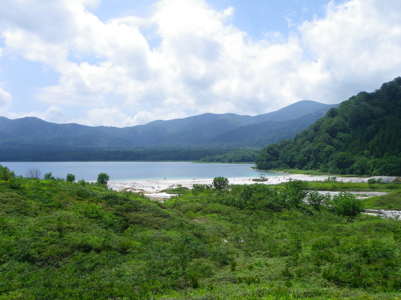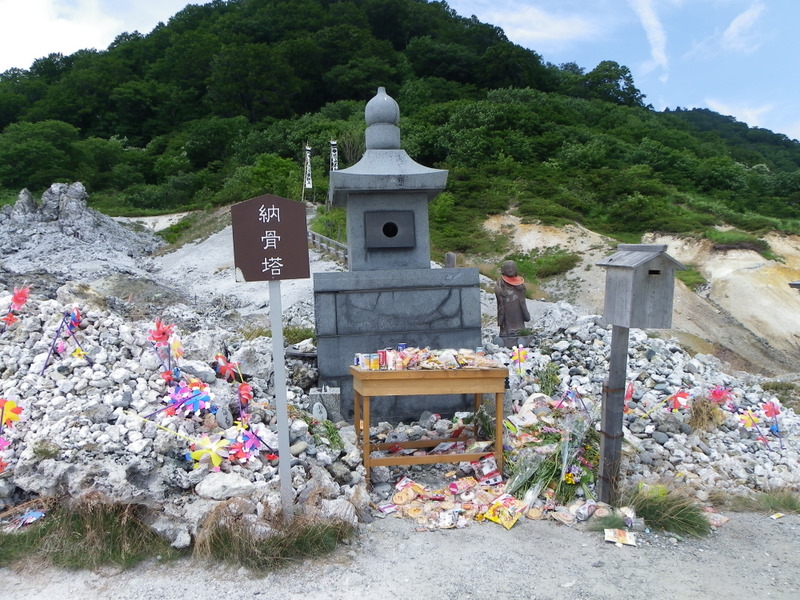 この湖も山も寺も、全てひっくるめて「恐山」という霊場となっており、死んだ人は皆ここへ来るそうだ。鮮やかな色の湖と、荒涼とした火山岩の道と、大量のお供え物と、死者を弔う人々・・・。ここでしか見られない景色だろうなあ。