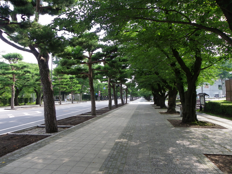 ばってん、道は立派。この道路は「日本の道100選」とやらに入っているらしい。人が少ないから、歩道の広さが際立つぜ。片側の歩道だけで、埼玉の県道2車線並みの広さがある。