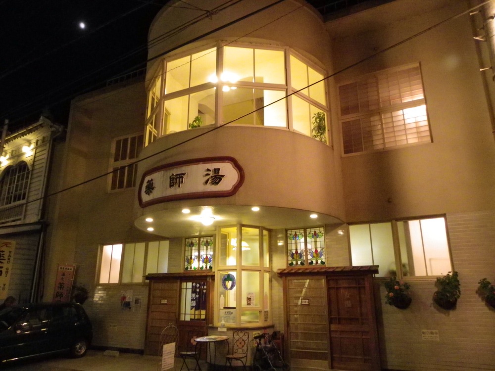 温泉津(ゆのつ)温泉に着き、うろちょろ下見をして、レトロな雰囲気の日帰り入浴施設「薬師湯」に入った。なんと、貸切風呂が40分500円で利用できる。疲れた心身を癒すには、これしかねえ。