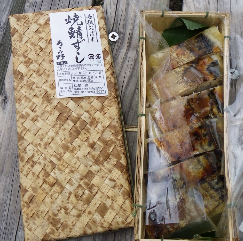 小浜市に入り、焼鯖寿司を買った。