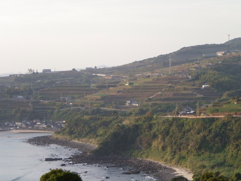 長島のどの坂も、天草のよりも角度がきつい。そしてまるっきり平地がねえ。坂を登り切ったら、下りのすぐ先にまた上りが見える。最悪の島だ。鬼ヶ島と呼んでやる。