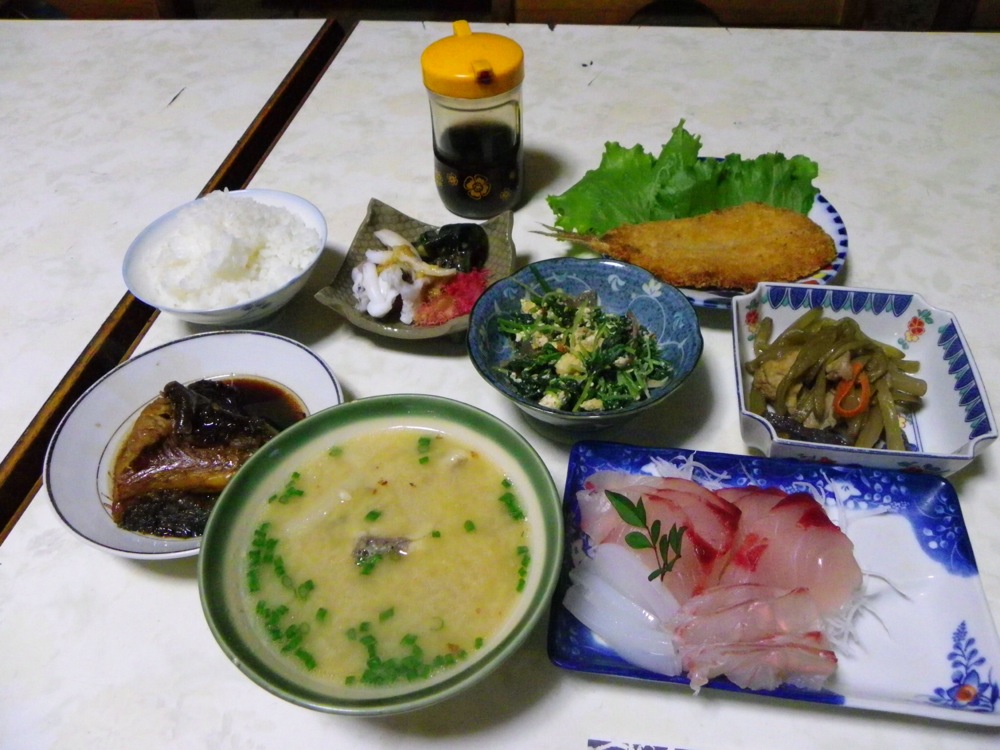 そして今晩は、オーナーの自家菜園のチンゲン菜と、管理人さんとオーナーの釣り仲間と思しき方から頂いた魚で、鍋。至高の調味料は新鮮さ。うまい!!