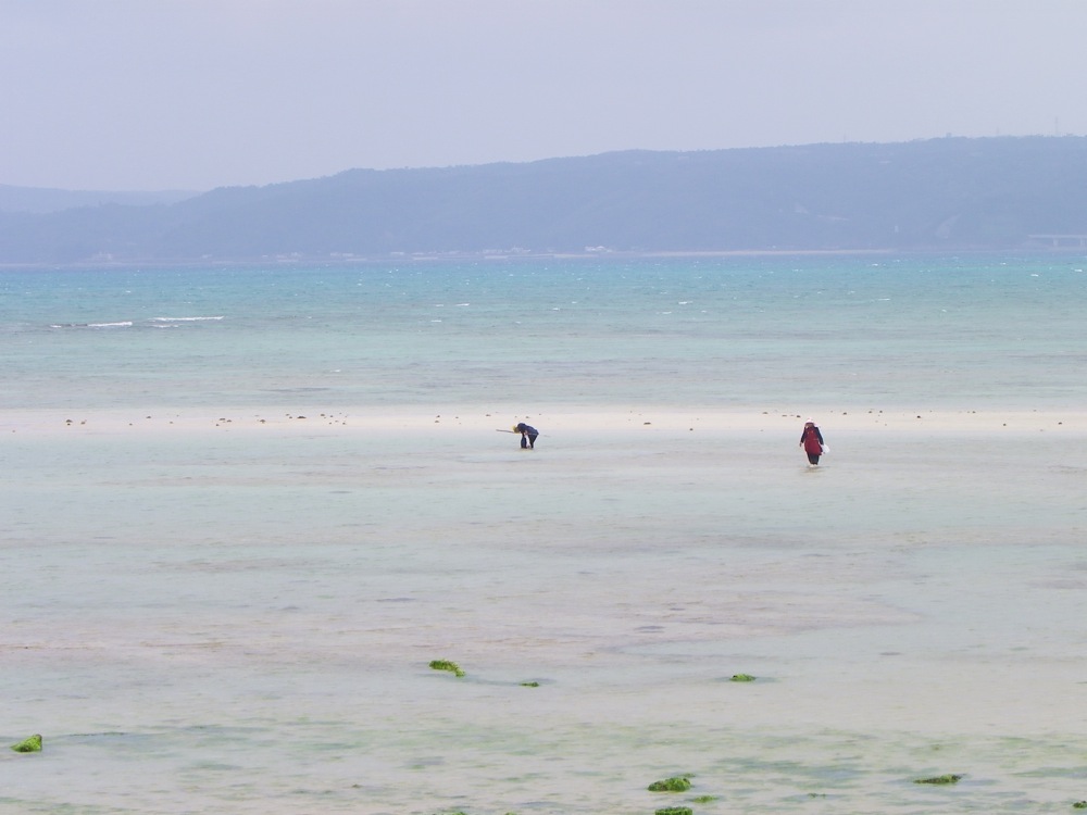 さて、今日は大潮ということで、海藻採りに連れて行ってもらった。海がめちゃ綺麗。久米島以外の沖縄の海は初!