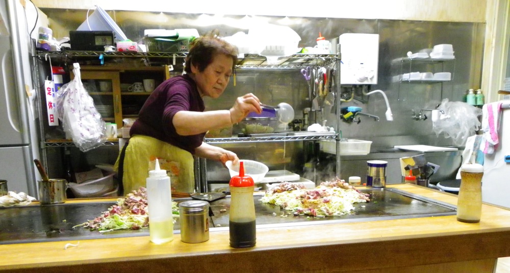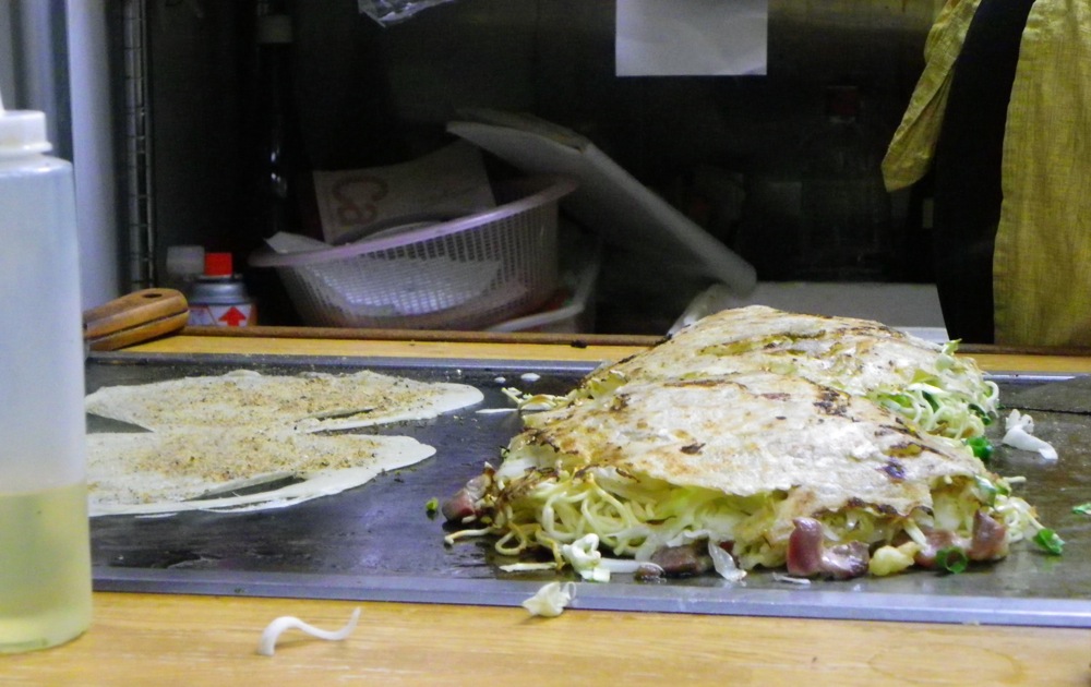 砂ずり(砂肝)の入ったお好み焼きは大変おいしく、店のおばちゃんも近所のおっちゃんも大変気さくで、方言も教えてもろうたし、ぶち楽しかった。土地の人と話しながらぁ土地の物を食べるなんてのぁ、旅の醍醐味だねえ。良いねい。一発でその街を気に入るよねえ。